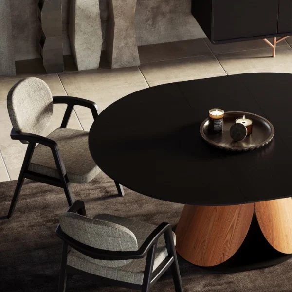 The ASTRA chair is a unique piece of furniture that combines the natural beauty of wood with durability. It features creatively designed armrests that wrap around the back, providing extra support and comfort. The chair’s frame is crafted from sturdy dark wood, adding a touch of classic elegance, while the soft, neutral-toned fabric brings a modern and cozy feel. This chair is not only comfortable but also a distinct decorative piece that can stand out in any space, whether it’s a chic dining room, a home office, or even a reading nook.