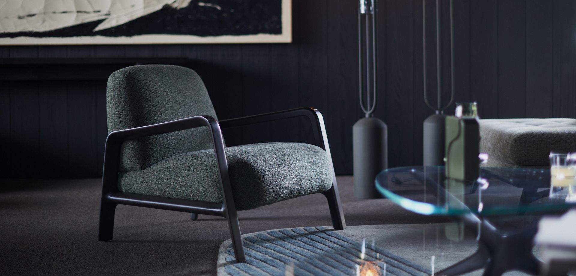 The DUNE NOIR Armchair is a refined piece that blends sculptural design with absolute comfort. Its sleek wooden frame, crafted with smooth architectural lines, extends seamlessly into the armrests, creating a bold yet lightweight structure. The generously upholstered seat and backrest, covered in soft textured fabric, invite relaxation while adding a sophisticated touch to any interior. Whether placed beside a fireplace or in a contemporary living space, the DUNE NOIR chair enhances the atmosphere with its balance of timeless elegance and functional comfort, making it a versatile choice for modern homes